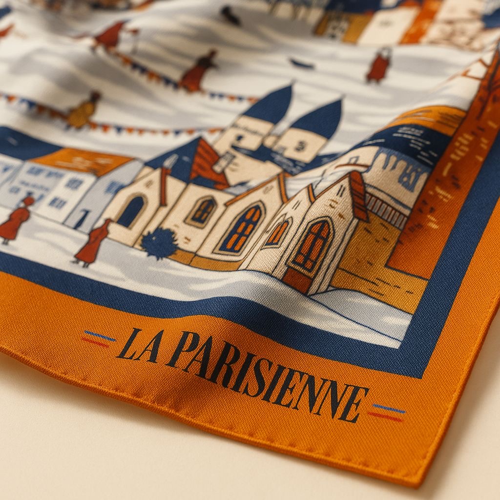 Jedes Seidenquadrat wird sorgfältig entworfen, wobei hochwertige Seidenmaterialien verwendet werden und der Schwerpunkt auf raffinierten Details liegt.